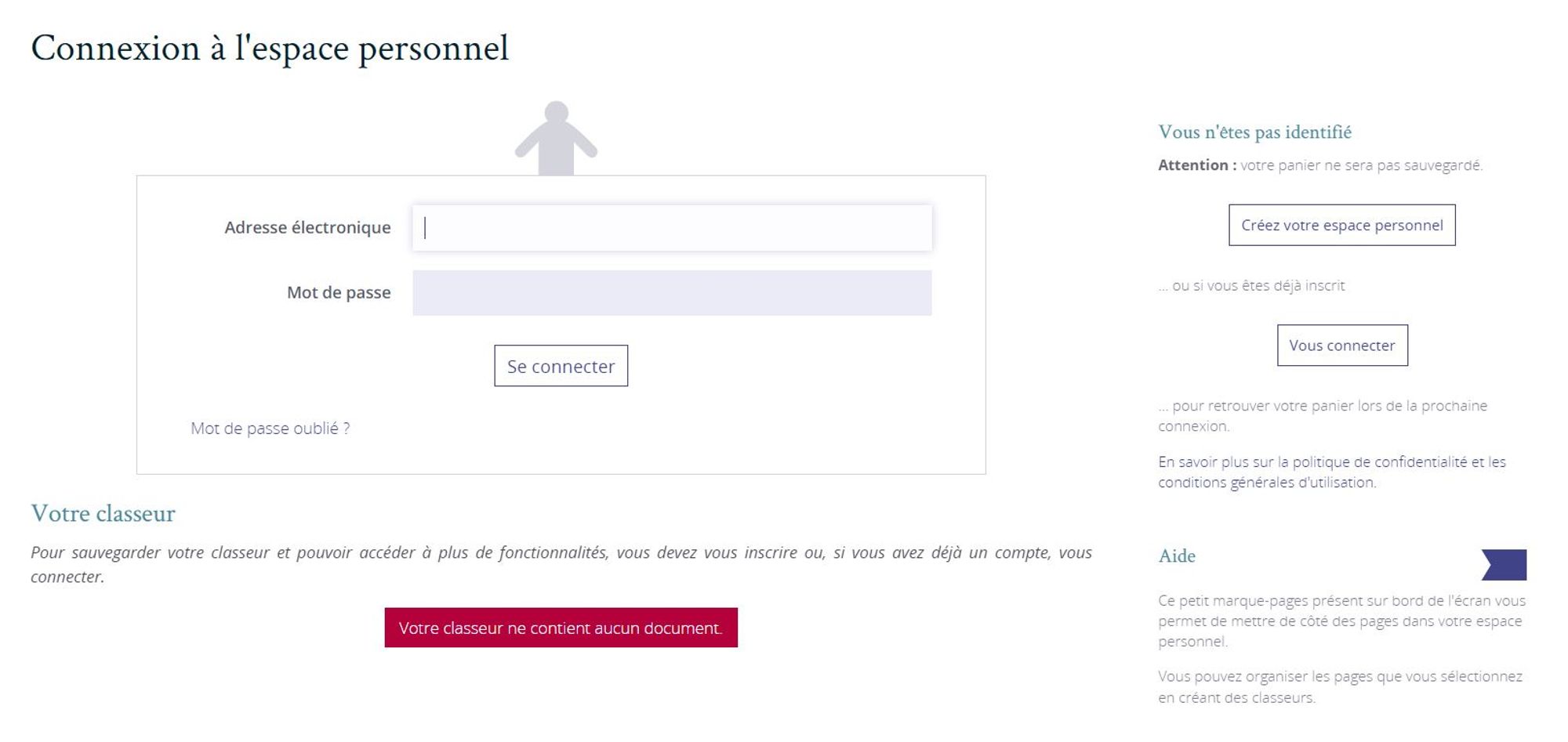 L'espace personnel est une fonctionnalité de notre site internet mise à votre disposition et non obligatoire pour consulter les archives en ligne. Vous pouvez accéder à votre classeur/panier ou participer à l'enrichissement des annotations en créant votre espace personnel.