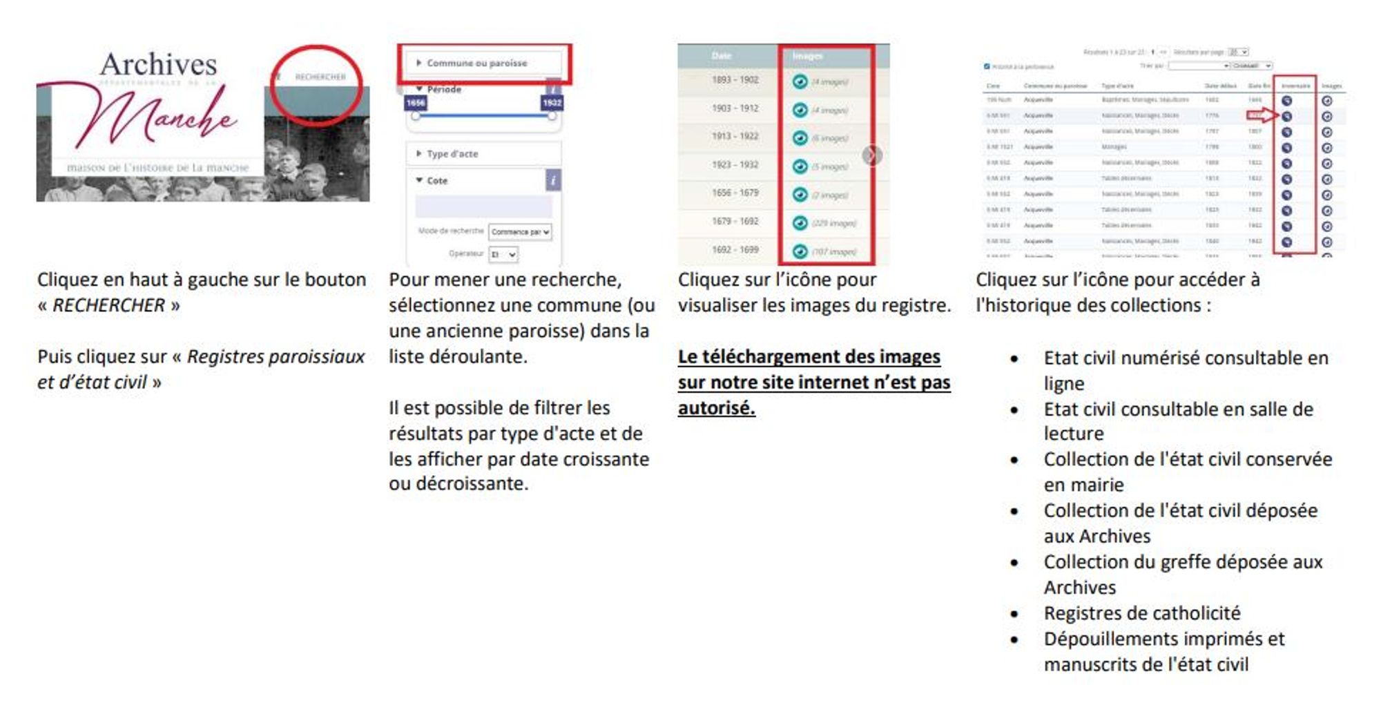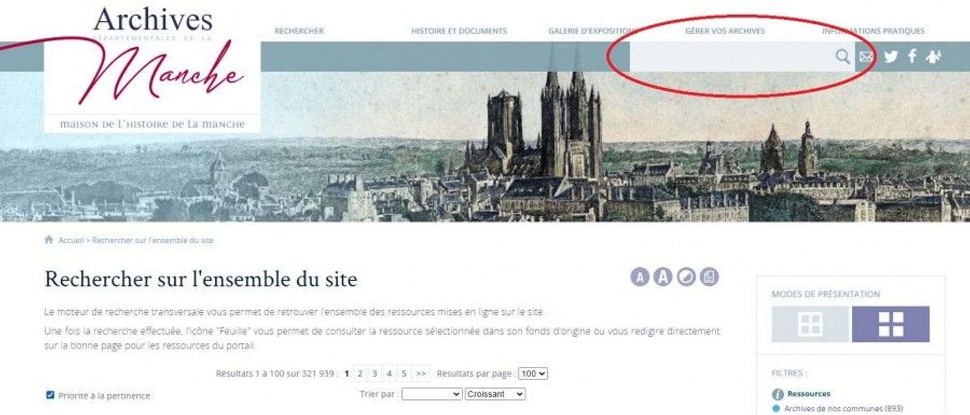 - Inventaires d'archives (À l'aide de ce formulaire, on pourra rechercher sur l'ensemble de tous les inventaires produits par les archives de la Manche, y compris les inventaires pdf, à l'exception des ressources qui font l'objet d'un formulaire dédié)