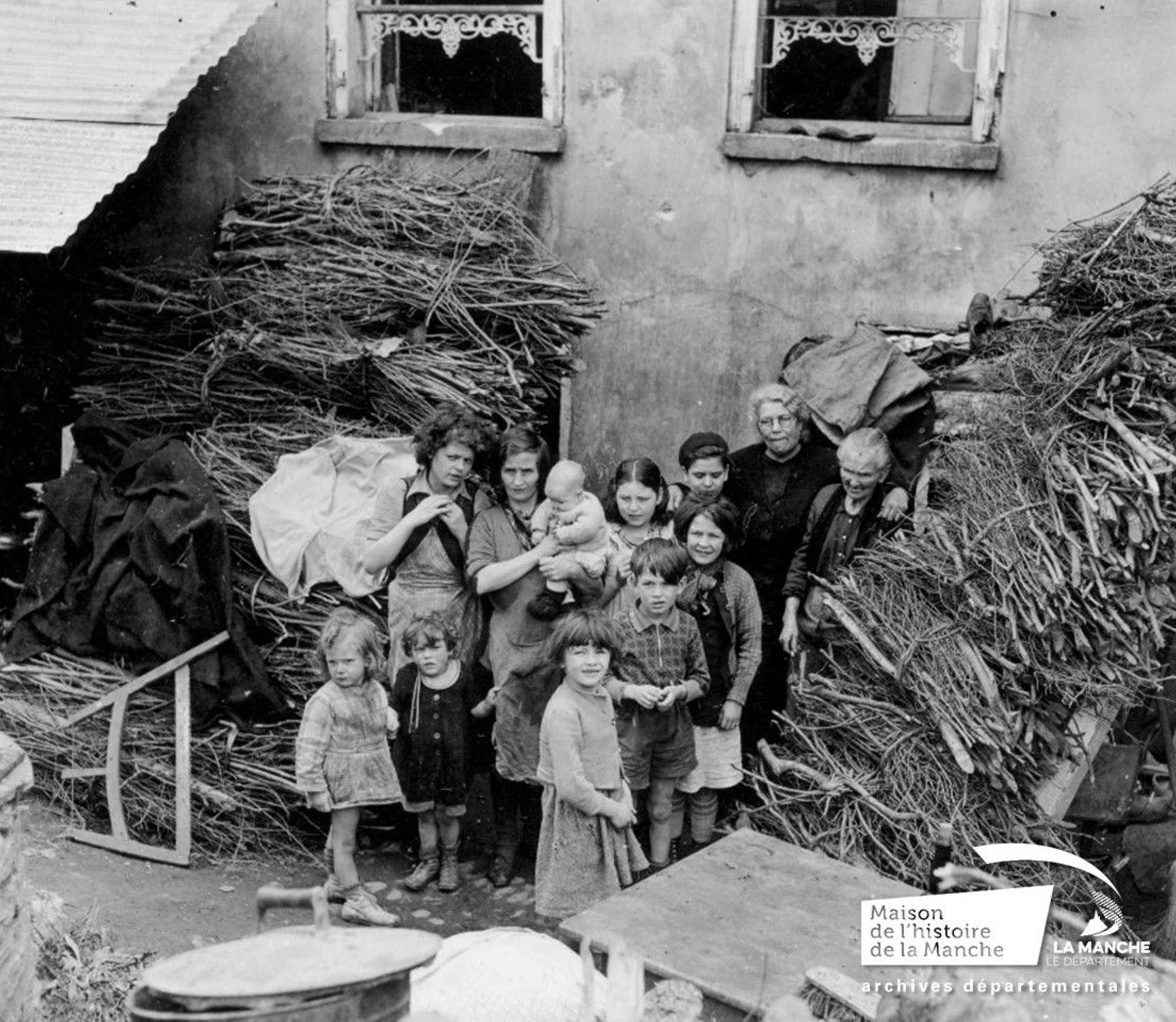 La petite fille qui se trouve à l’extrême gauche de la photographie est Marcelle Campion qui s’est également réfugiée dans la cave avec sa grand-mère Angèle (à l’extrême droite du cliché).