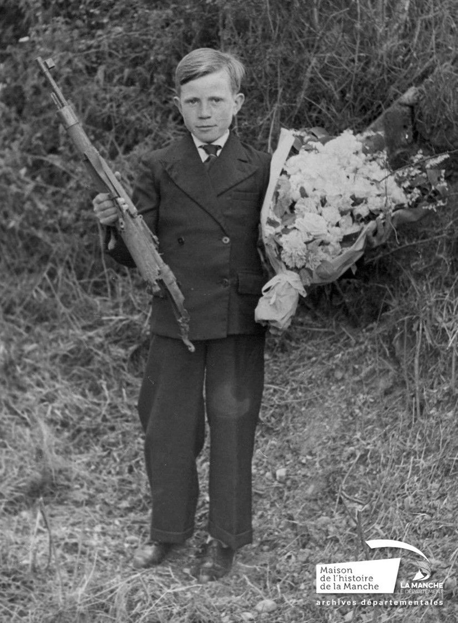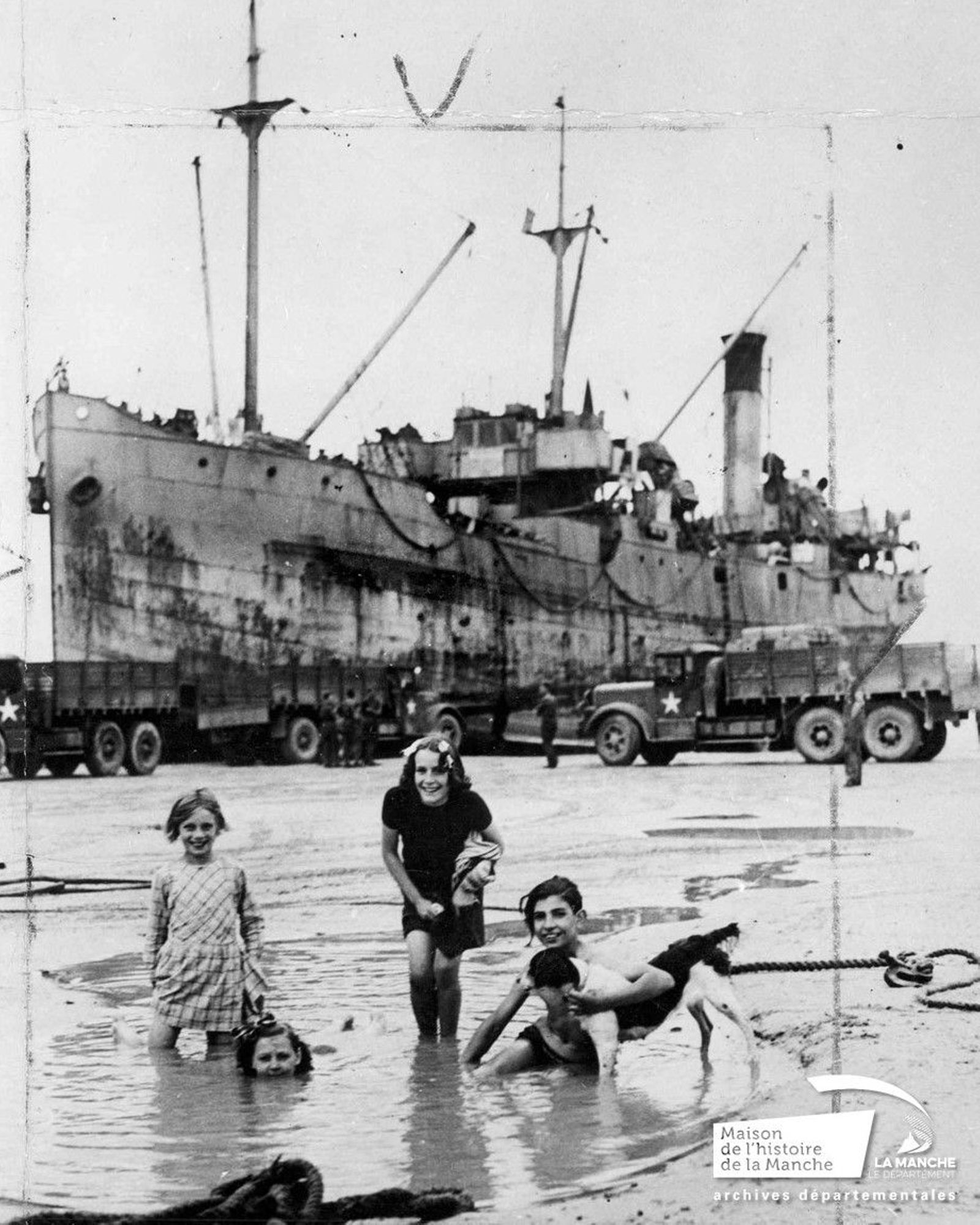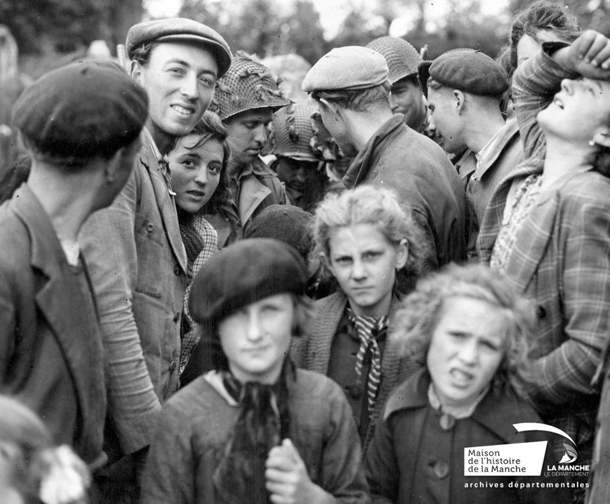 La seconde guerre mondiale a été pour toute une génération un événement marquant. Comme l’ensemble de la population civile, les jeunes manchois ne furent pas épargnés par ce conflit. Ils connurent les privations de l’Occupation, les effets de la propagande ainsi que les souffrances nées des opérations militaires. Ils ont été spectateurs mais aussi acteurs des mutations de la société. L’exposition évoque la vie quotidienne des jeunes manchois entre le 6 juin et la fin août 1944. Une centaine de tirages photographiques de grand format sont présentés le long d’un parcours thématique : le débarquement, la bataille, l’exode, la rencontre avec les libérateurs ou encore la vie dans les ruines. Celles-ci sont toutes issues des collections des archives départementales et notamment du fonds des photographies américaines des Archives nationales américaines. Des documents iconographiques (dessins, affiches de propagande), des pièces d’archives et des objets de l’époque viennent agrémenter le parcours photographique.