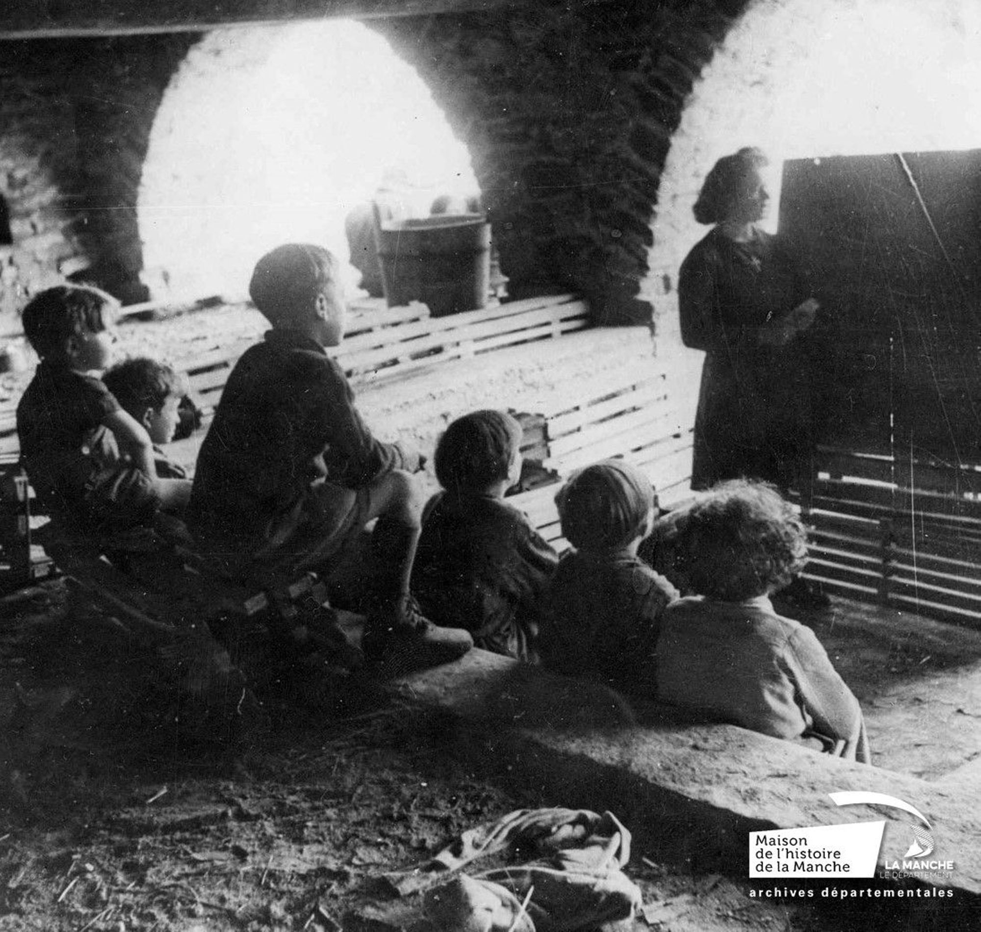 Tout commence le 6 juin avec les bombardements. A Saint-Lô, 800 personnes se réfugient dans le tunnel construit par les Allemands sous le rocher. Puis, il faut prendre les chemins de l'exode, dormir dans les fermes ou à la belle étoile, dans les chemins creux. Les enfants subissent la fatigue, la faim et la peur. Car parfois, ils se retrouvent pris entre deux feux, sous les bombardements et les mitraillages alliés, coincés entre l'armée américaine qui avance et les troupes allemandes qui reculent. Le 22 juillet, le préfet note : "Les réfugiés accomplissent de dures étapes et les enfants, pieds nus, font peine à voir malgré la bonne volonté de tous" (Rapport du préfet, 22 juillet 1944).
