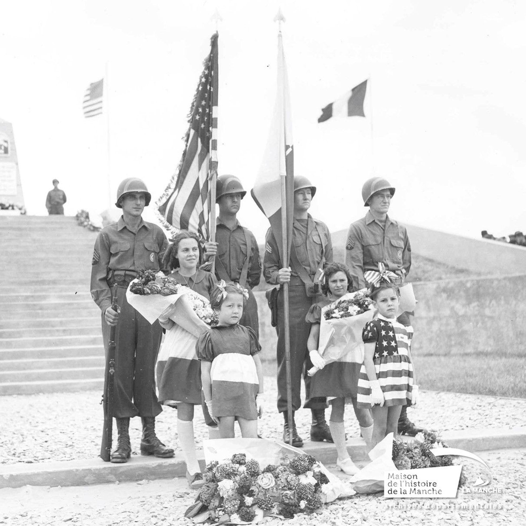 Les photographes américains ne manquent pas de couvrir ces événements. Pour l'armée américaine, l'enjeu est de montrer la joie des populations libérées. D'autant que des recherches historiques récentes ont montré que les rapports entre les troupes alliées et les civils n'étaient pas si cordiales, notamment à Cherbourg où la présence américaine est dense et dure plusieurs mois. Or, quel meilleur symbole pour un monde en pleine renaissance que des enfants qui en seront les forces vives ?