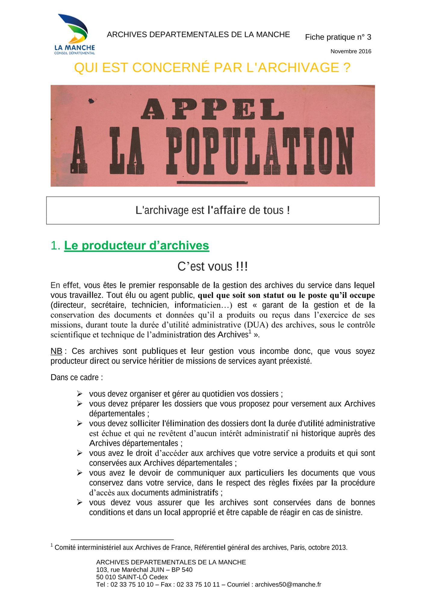 NB : Ces archives sont publiques et leur gestion vous incombe donc, que vous soyez producteur direct ou service héritier de missions de services ayant préexisté.