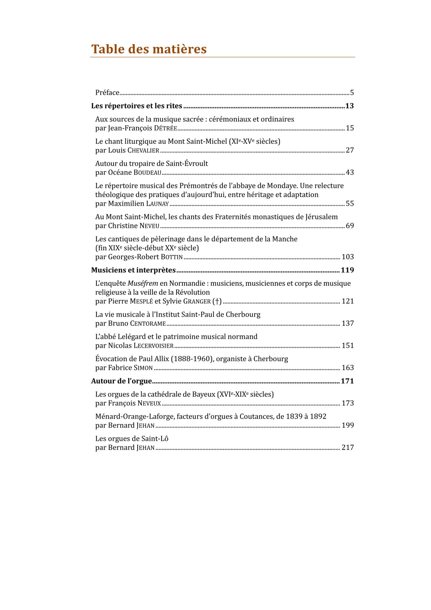 Durant trois jours, au château de Cerisy-la-Salle (Manche), historiens, musiciens et ecclésiastiques se sont réunis pour discuter et échanger sur cette musique sacrée en Normandie, de son histoire à ses enjeux actuels, entre création et tradition, entre usage cultuel et usage culturel. Une recherche stimulante et des interprétations éclairantes : conférences et concerts alternés. Seules les conférences ont laissé des actes, réunis et publiés dans cet ouvrage, enrichis d’abondantes annexes (listes et catalogues de livres liturgiques et d’instruments dérivés de l’orgue) qui raviront les spécialistes et les amateurs.